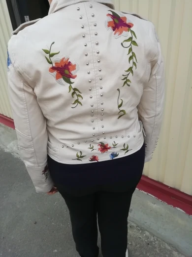 Отличная куртка! Села как надо. Качественная фурнитура, размеры соответствуют, кожзам мягкий, так и не скажешь, что не кожа. Цвет вышивки показался чуть бледнее, чем на фото о, но это не принципиально.
