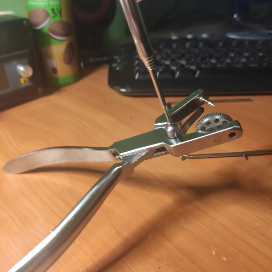 продавец не отвечает, описанию не соответствует, и не только этот товар, не продавца, не товар, не магазин не советую, щипцы не заходят в клампы, пробиватель весь болтается, сделано непонятно из чего, хотя в описании пишут что мол нержавейка, но нержавейка не магнитная