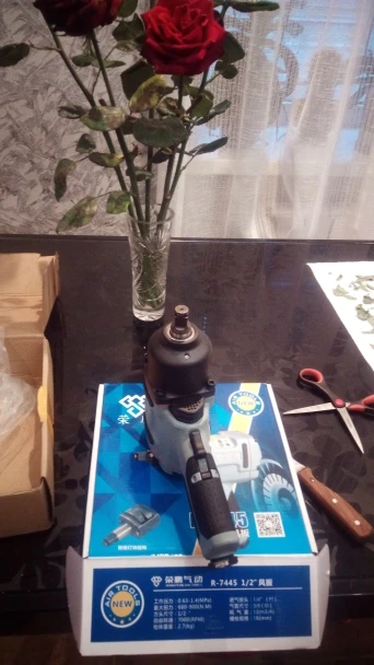 Товар пришел достаточно быстро в Тамань и привез его курьер. Воздушного шланга спиралью диаметром 6мм и 8атмосфер катострофически не хватает чтоб гайковерт работал на весь потонциал. С шлангом 6мм не открутил колесный болт но с натяжкой срывает резьбу м8. Прикупил шланг 9мм 7метров и колесный болт открутил. В инструкции рабочее давление от 6 до 14 атмосфер. Инструмент увесистый и внушает доверие.