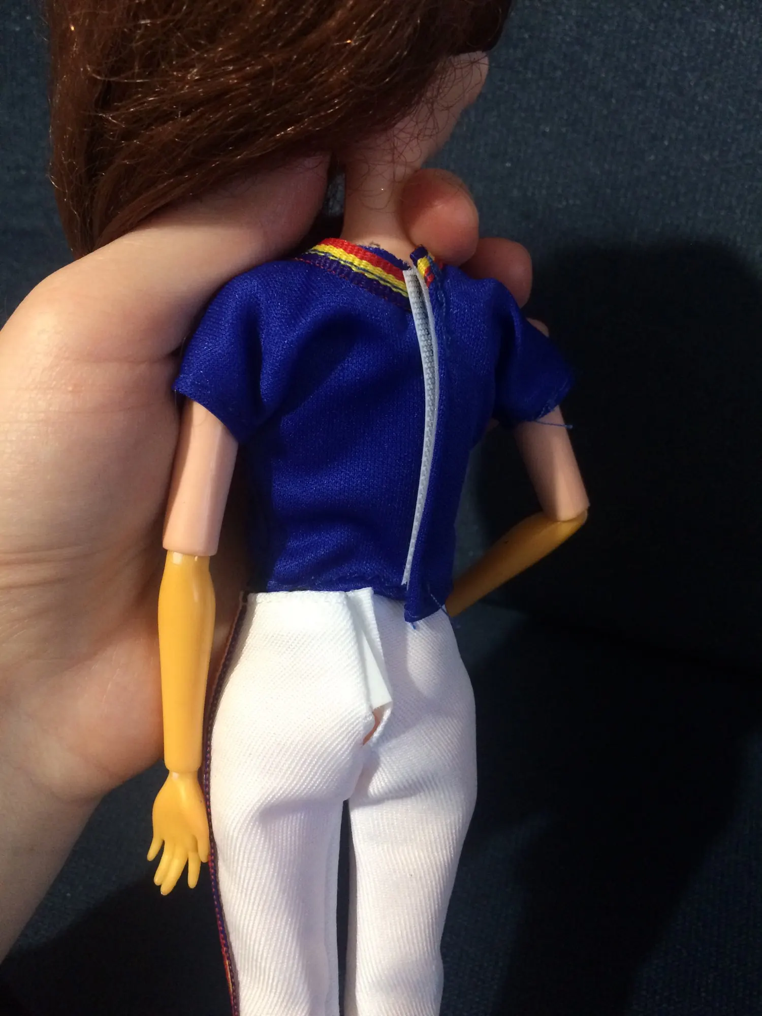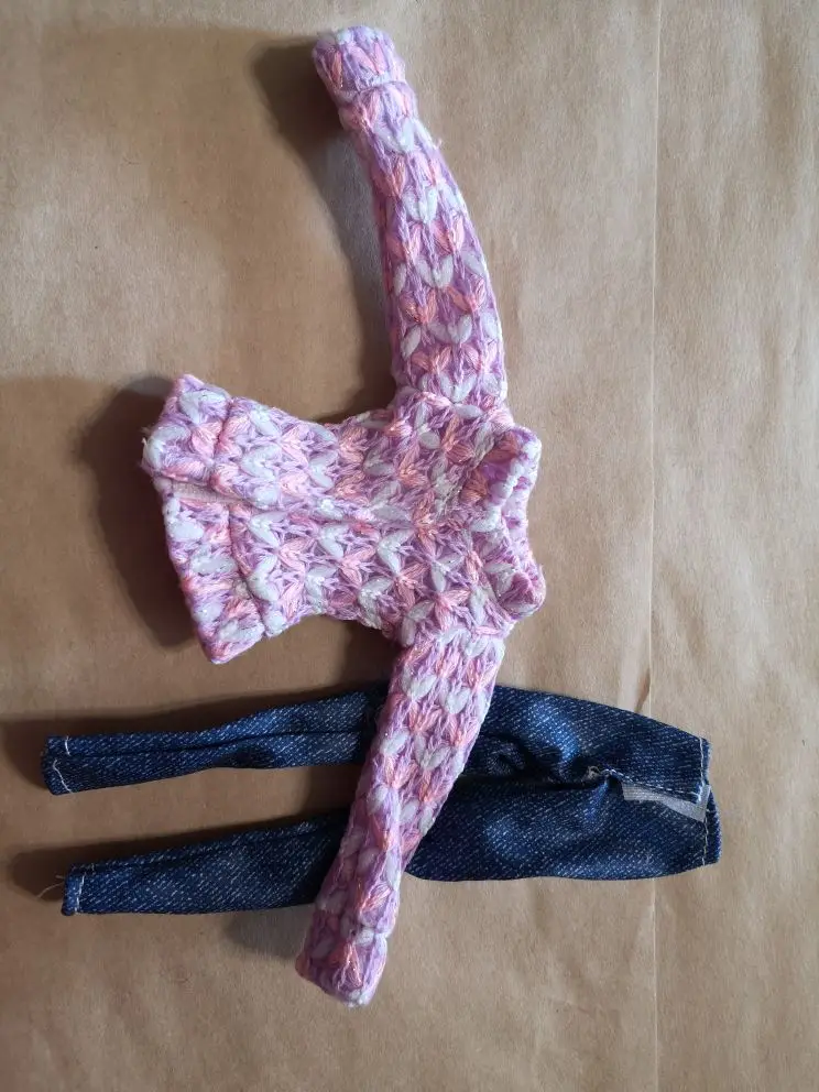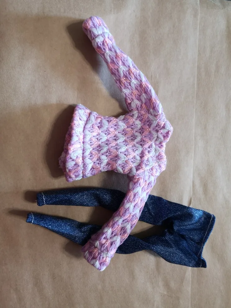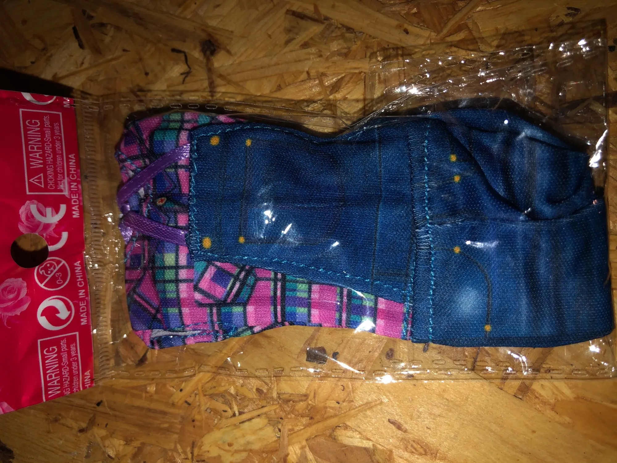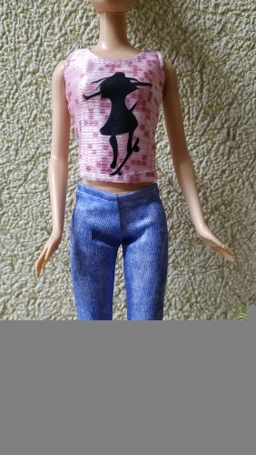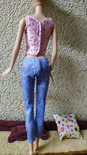 Pantalon trop petit pour une poupée Barbie, les mollets ne passent pas.