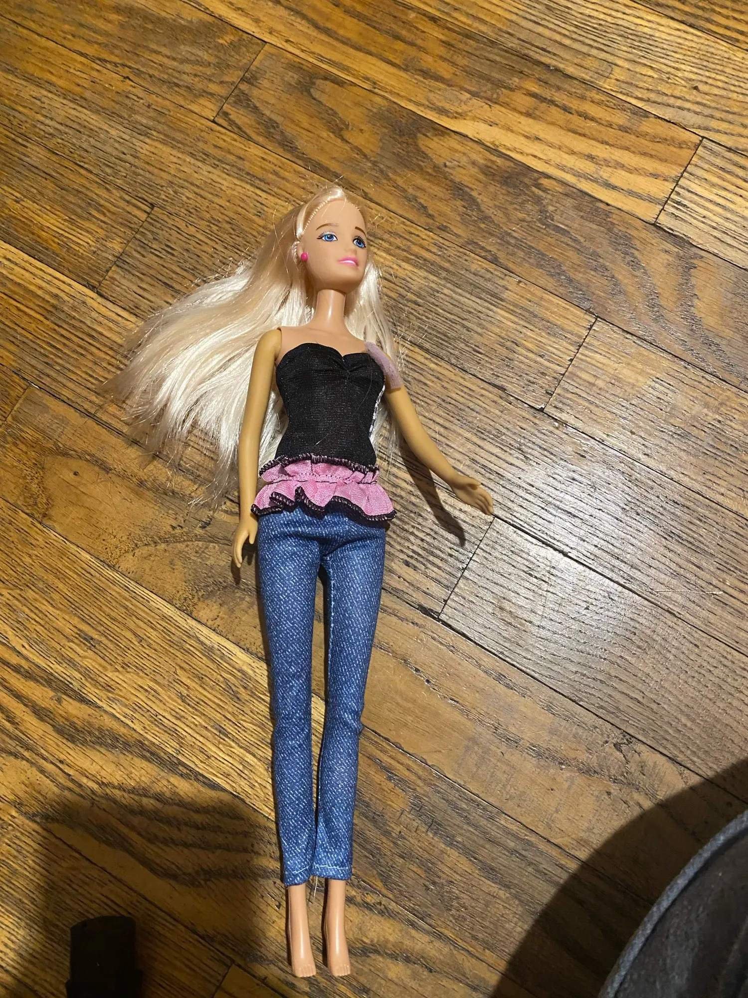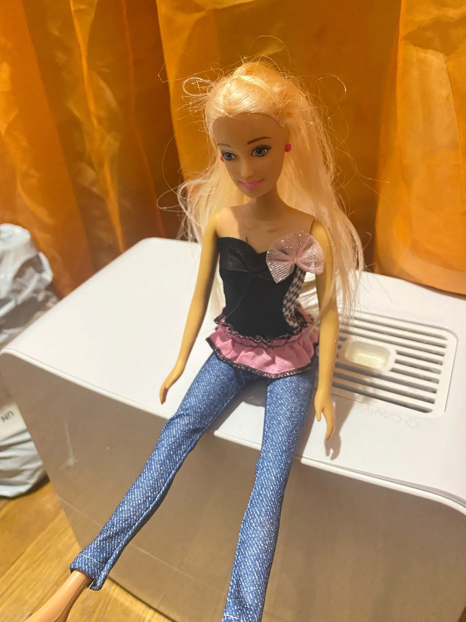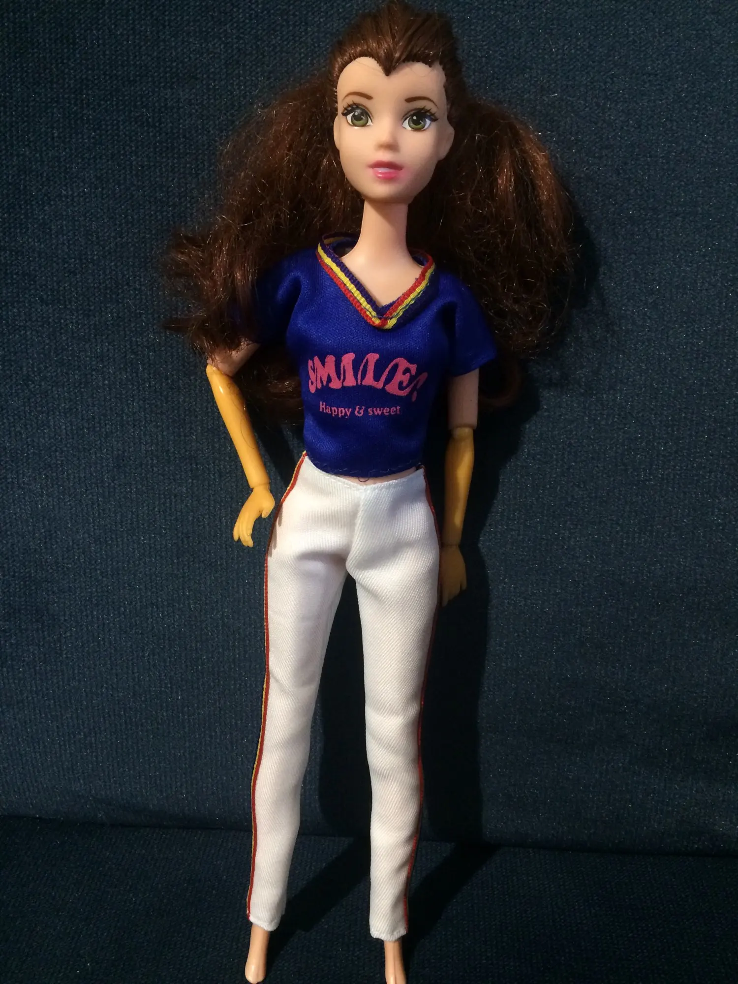 Pantalon trop petit pour une poupée Barbie, les mollets ne passent pas.