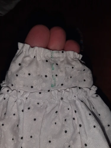 Доставка за две недели в Москву. Красивое платье, сидит на куколке хорошо. Немного торчали нитки , но мы решили это момент) С продавцом не общалась.