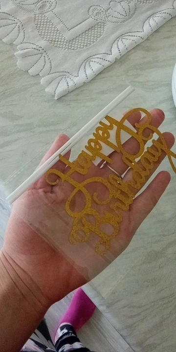 топер очень тоненький, как лист бумаги. ожидалось, что будет плотным , в комплекте лежит 2 пластиковые маленькие трубочки, к которым необходимо его приклеить