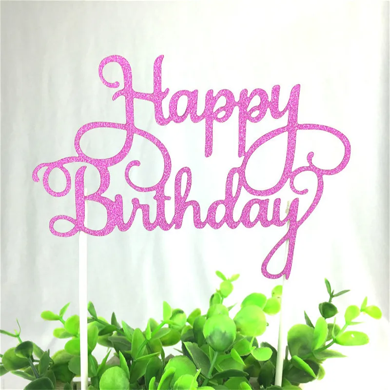 1 шт., блестящий Топпер для торта С Днем Рождения для торта, Золотой флаг для торта, для семейного дня рождения, украшения для выпечки