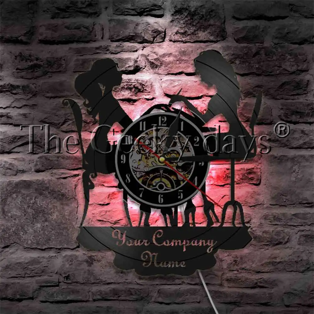 Маникюрный светодиодный светильник, Виниловая пластинка, настенные часы для салона красоты, настенные часы с именем вашей компании СВЕТОДИОДНЫЙ ная Подвесная лампа