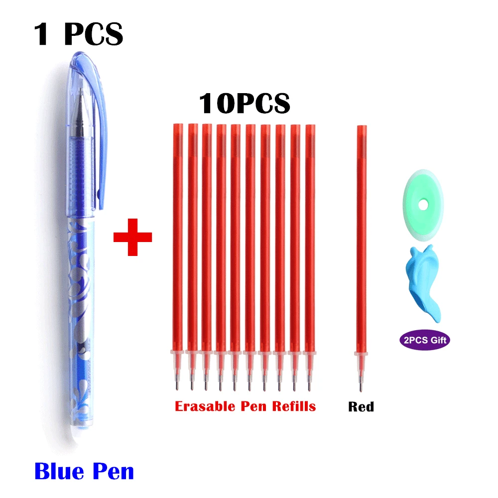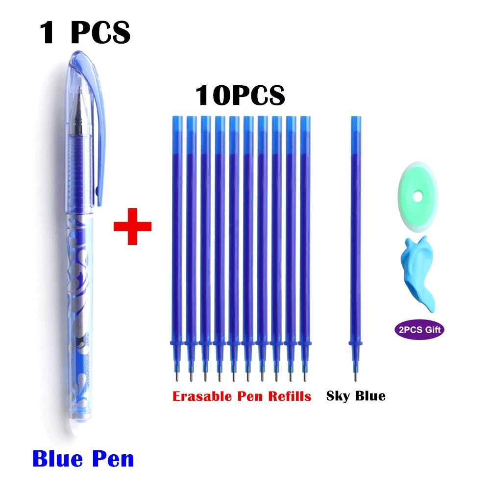 1 шт. стирающиеся ручки + 10 шт. стираемые ручки для заправки и два подарочных ластика + держатель для ручки