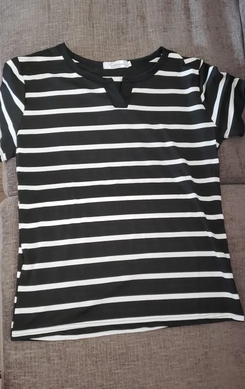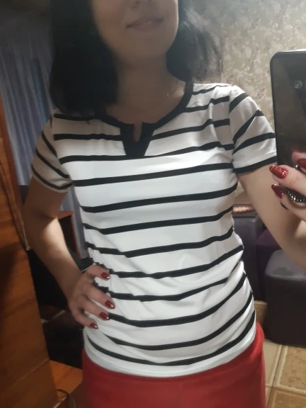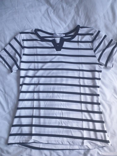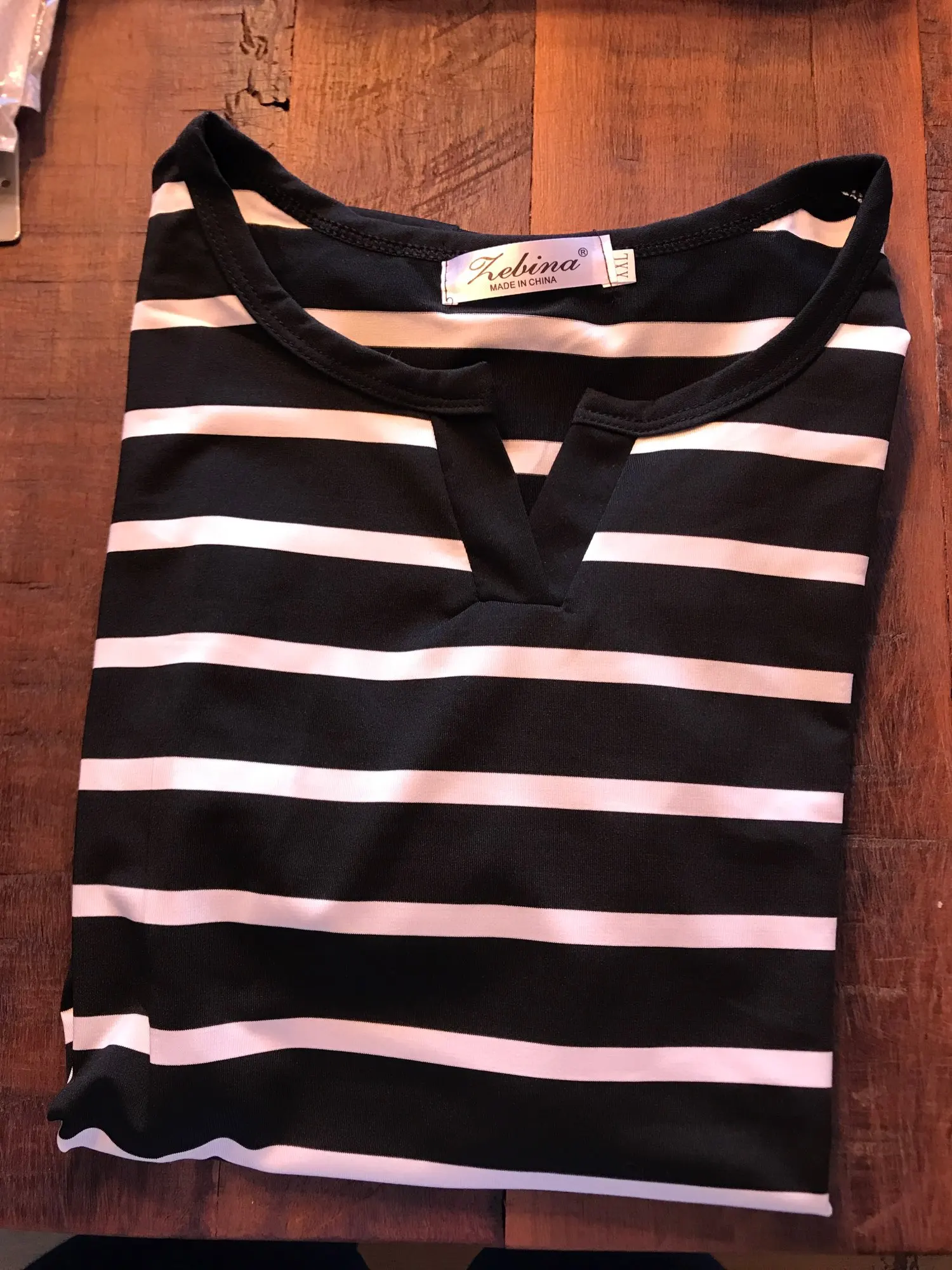 Футболка женская в полоску, с V-образным вырезом и коротким рукавом