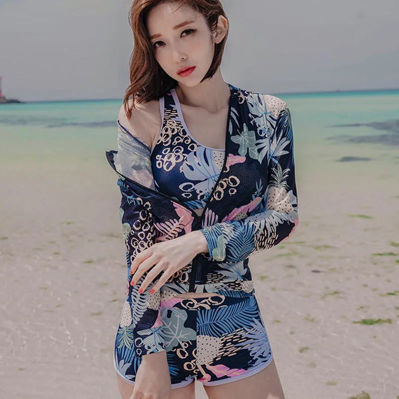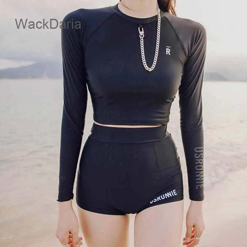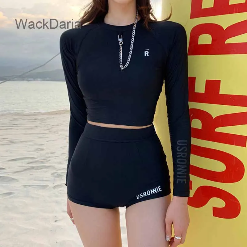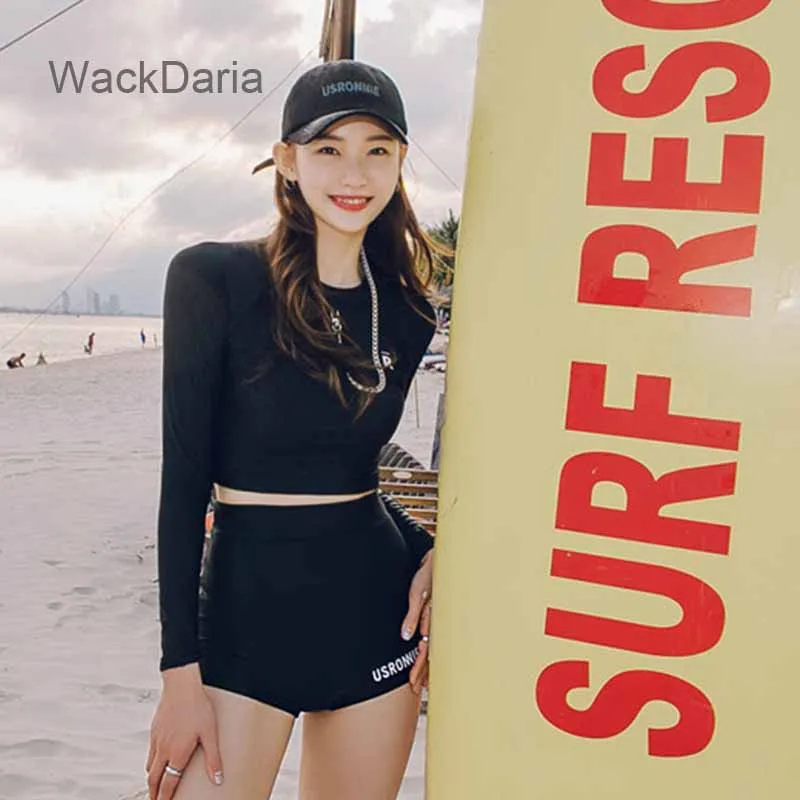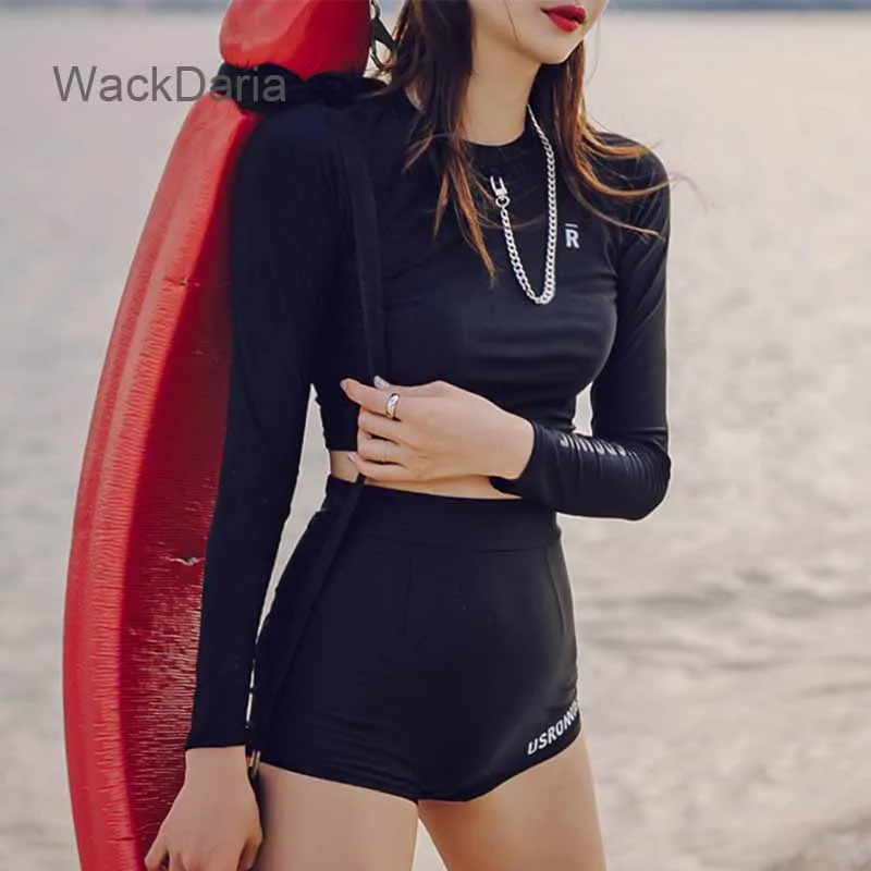 Женский купальник WackDaria, с длинным рукавом, короткие штаны, спортивный костюм, костюм для серфинга, пляжная одежда на молнии