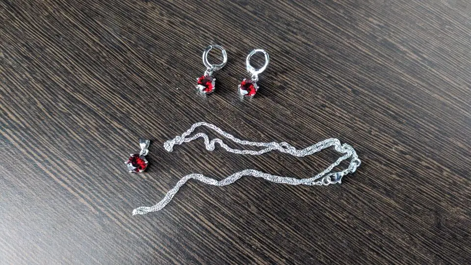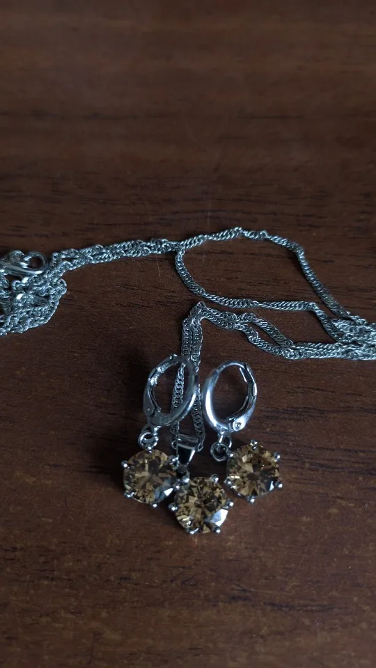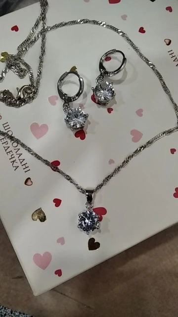 по цене и стоимость миленькие маленькие серёжки и кулон с цепочкой. заказ шёл долго