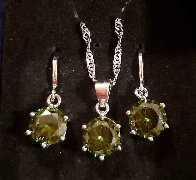 Заказ шел месяц примерно. Серьги очень красивые. Хотела получить этот заказ до нового года, чтоб к новогоднему платью, но увы... Цепочка с браком: застежка сломана, открывается с трудом и потом не закрывается. А на кулоне на вставке трещина. Так что буду носить только серьги.