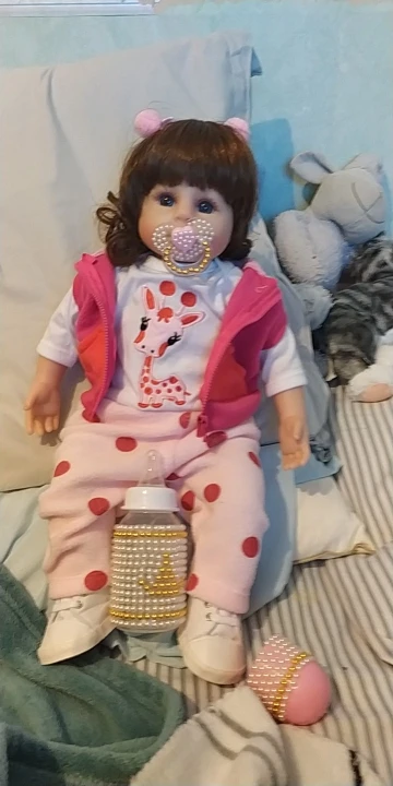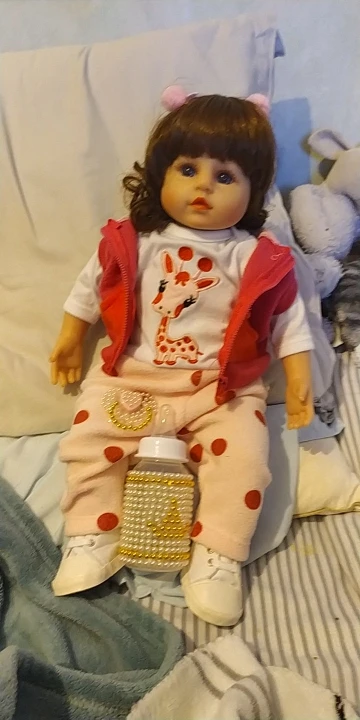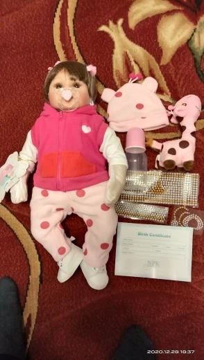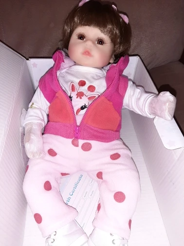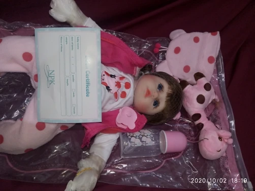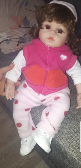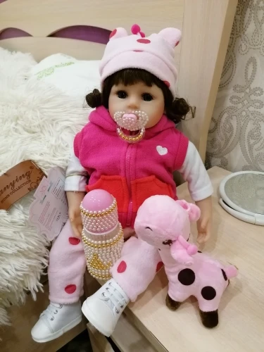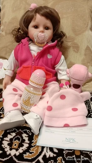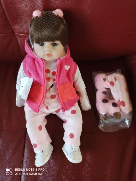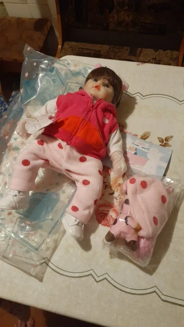 Кукла очень красивая, одежда куклы тоже отлично сшита, ровно, без дырок. Силикон у куклы очень приятный на ощупь. Хотелось бы конечно, чтоб соска была не на магните, так как она падает. Ну и самое главное жалко, что волосы наклеены, а не прошиты. А так все супер! Благодарю продавца, спасибо Вам, что так оперативно за две недели прислали куклу, 31.12.20г. пришла на почту и мы сразу забрали, очень обрадовались, что успели на Новый год!)
