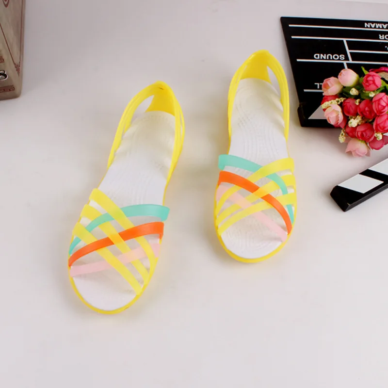 Женские босоножки; Новинка лета 2018 года; Яркие цвета; Женская обувь с открытым носком; Stappy Beach Valentine; Радужная прозрачная обувь с кроком; Женская обувь на плоской подошве; XC34
