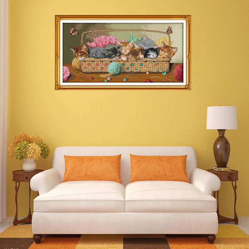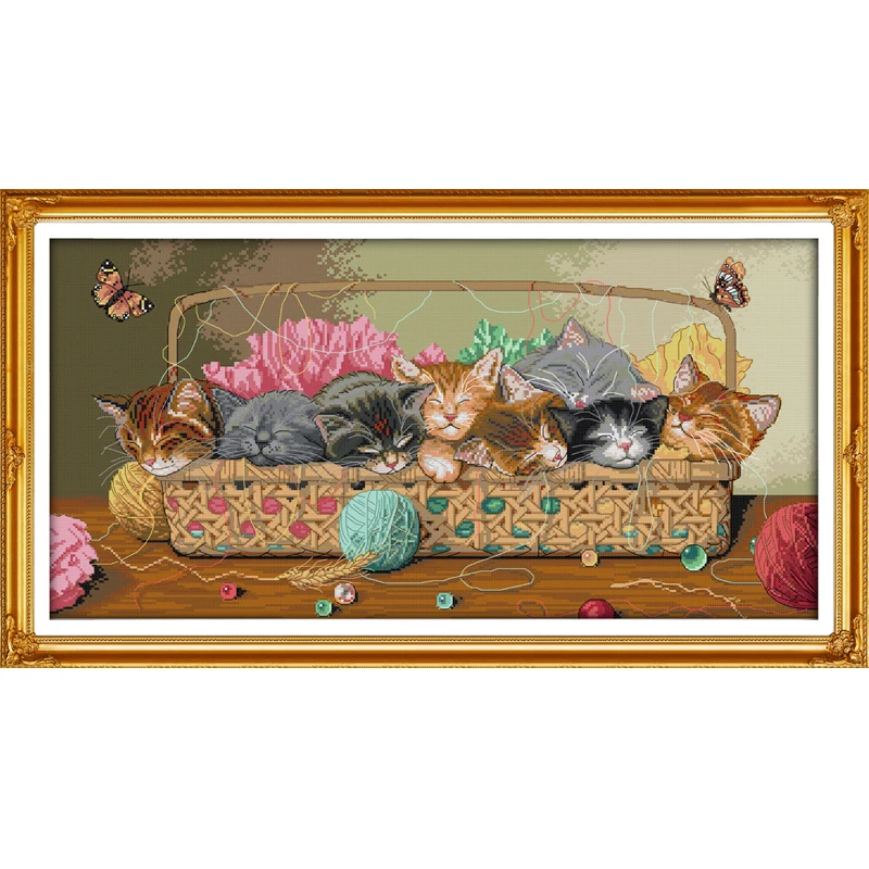 Новорожденные котята в корзине, Счетный крест, сделай сам, 14CT и 11ct для вышивки, домашний декор, рукоделие, Набор для вышивания