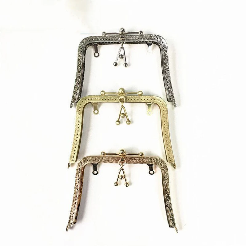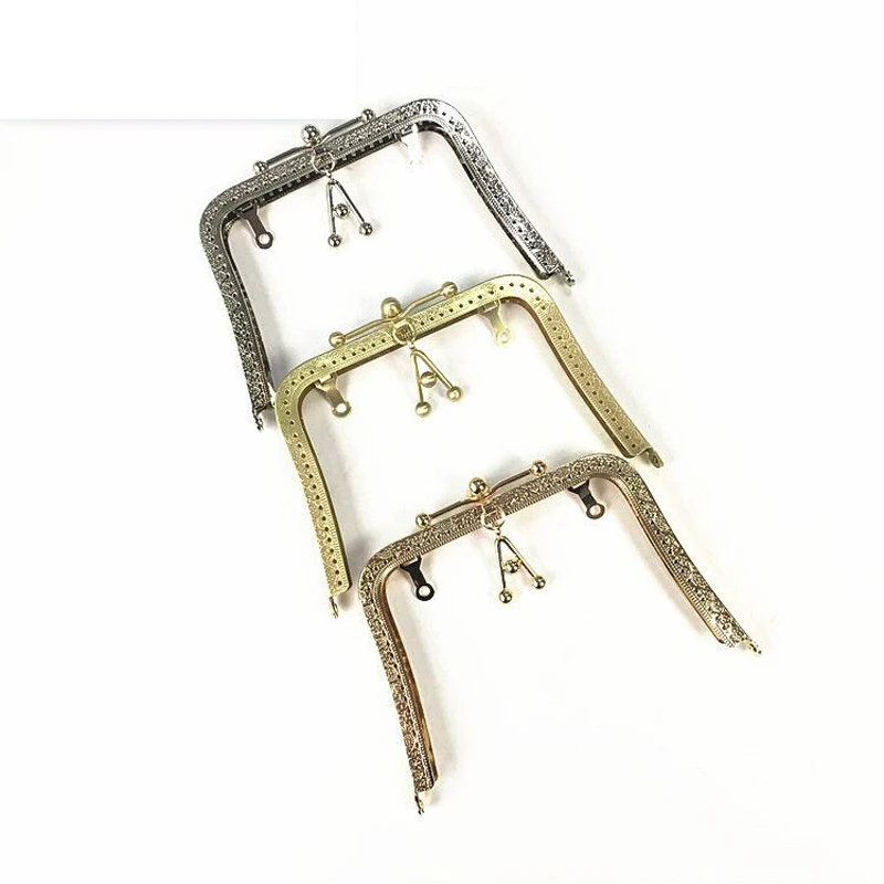 Застежка для кошелька, 16,5 см, серебристая, золотистая, бронзовая, плоская, длинная, металлическая, с накаткой, с резным узором, 5 шт.лот