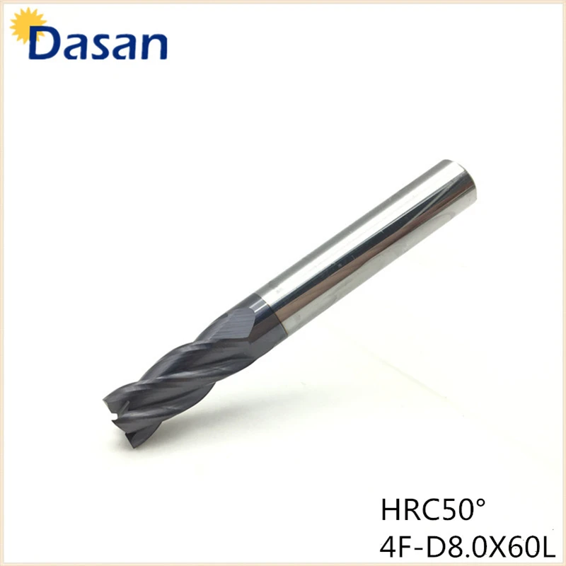 Концевая фреза HRC50 4F-D8X60L, вольфрамовый Карбид с 4 канавками, квадратный, плоский, Спиральные Биты, 1 шт.