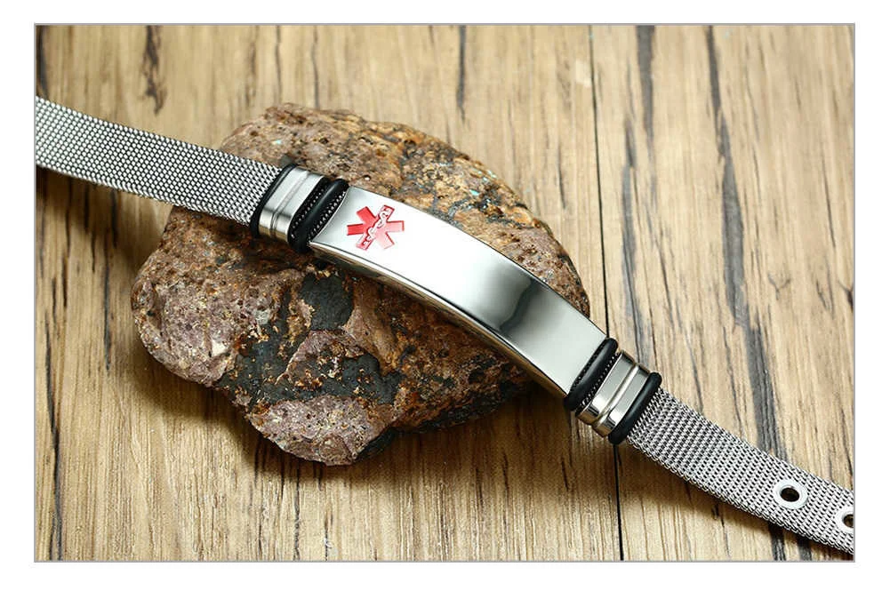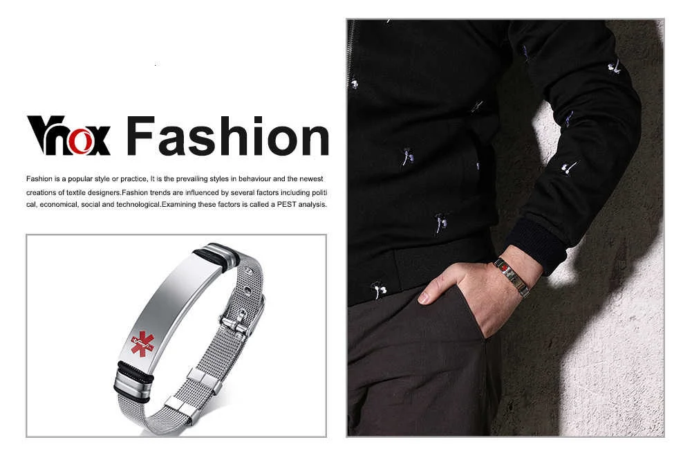 Браслет Vnox с гравировкой мужскойженский, регулируемый браслет из нержавеющей стали для выявления непредвиденных случаев, с медицинским оповещением, ювелирное изделие персонализированное