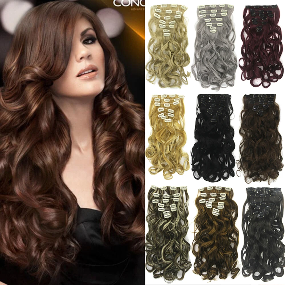 Soowee Длинные Синтетические Волосы Кудрявые заколки для наращивания волос черные коричневые светлые женские заколки для волос для женщин