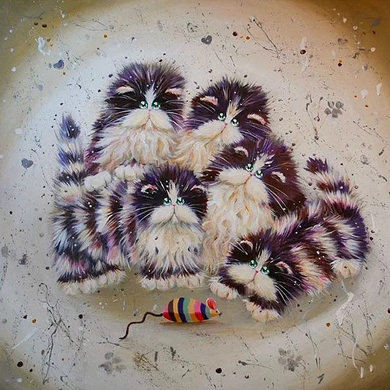 Картина для стразы, Хрустальный декор, алмазная живопись для рукоделия, круглая Вышивка крестиком "научиться ловить мышь, кошку", узор, алмазная вышивка
