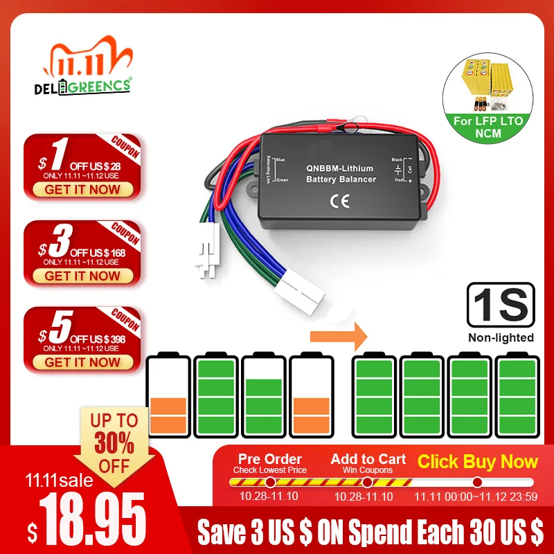 Deligreen балансиры батареи могут поддерживать разницу в напряжении батареи в пределах 10 мВ (30 мВ для 12 В свинцово-кислотного аккумулятора)