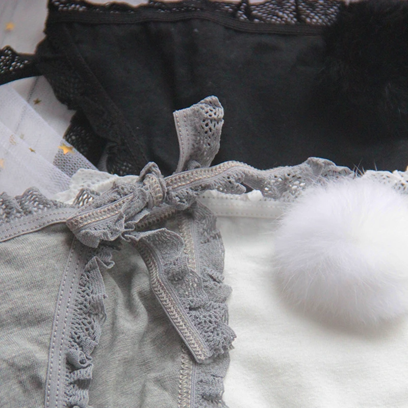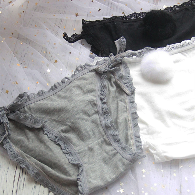 Женские Соблазнительные трусики с боковой завязкой, хлопковые трусики с милым кроличьим хвостом, нижнее белье
