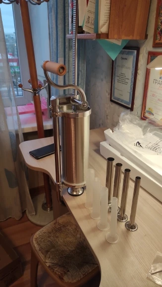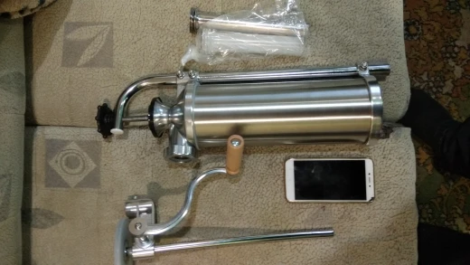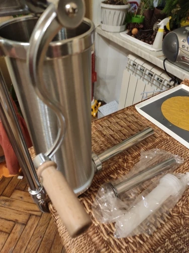 Отлично для домашнего производства колбас и сосисок, качественный шприц нержавейка видел в отзывах, что ножка ржавеет, тут немного поскупились на материалах