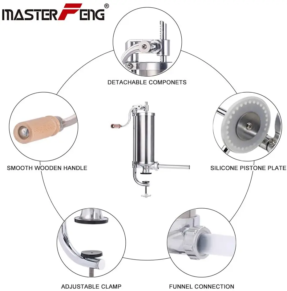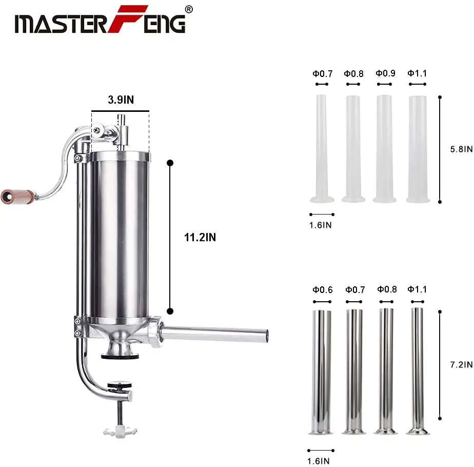 Ручная машина для фаршировки сосисок мясом, прибор из нержавеющей стали объемом 5 фунтов2,5 кг для наполнения сосисок, шприц для домашнего изготовления сосисок