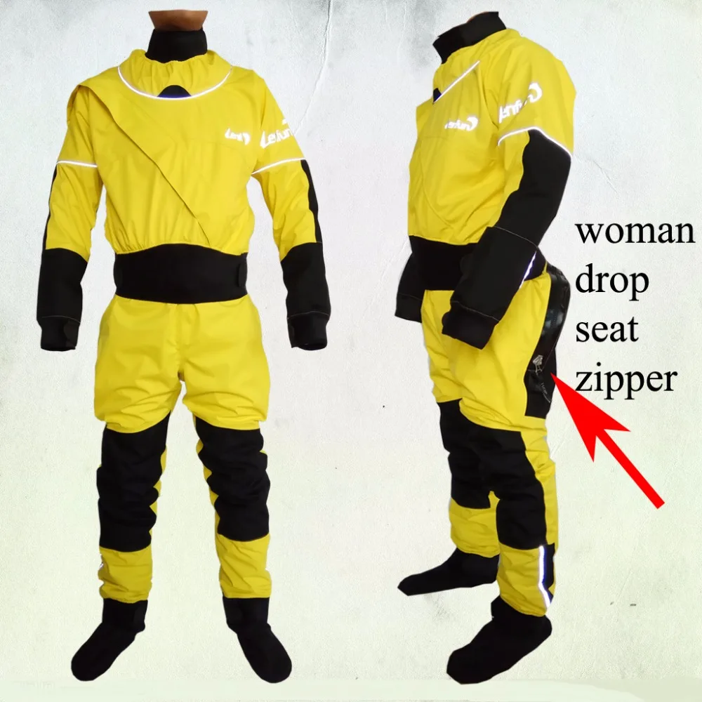 Определяющими чертами этих сухих костюмов являются «юбка» (для того, чтобы смыть вашу юбку-спрей, как двойной туннель на сухом топе) чтобы держать каяк суше во время катания или гребли в волнах, этот сухой костюм поставляется в стандартном стиле с: рельефной молнией (для скорости и удобства при звонках природы), Шеи и запястья латекса прокладки, с застёжкой "липучкой" протекторы, G-tex 3L дышащая 3-х слойные сухой на резиновой подошве для маленьких детей; Носки лодыжки неопрена манжеты с регулируемыми «лента-липучка "tab молниях для гравия из ваших пинетки, И самослив.
