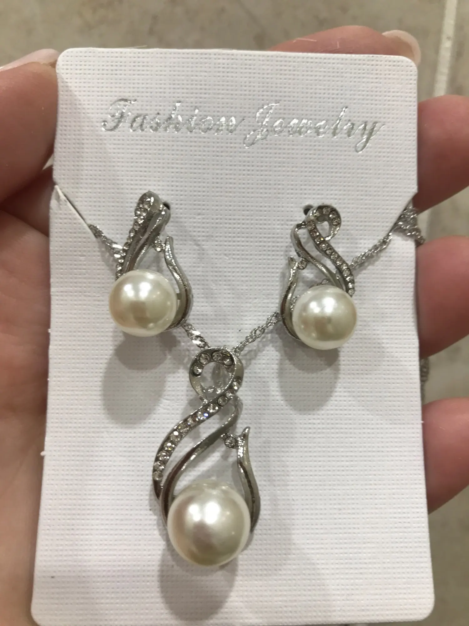 Женский комплект из колье и серёжек VKME, Свадебный комплект украшений серебряного цвета, Комплект украшений из искусственного жемчуга