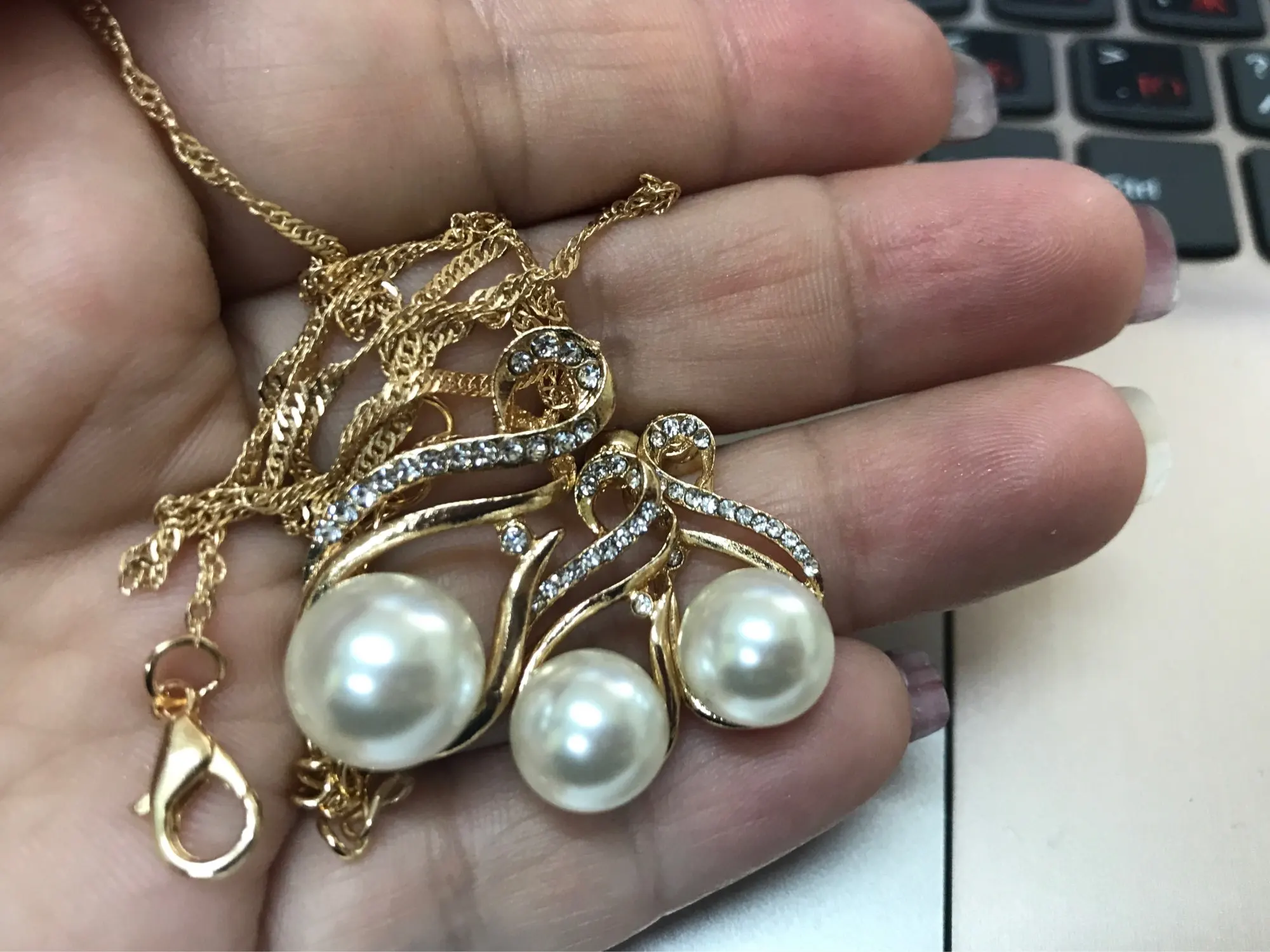 Очень долгая доставка, больше 2х месяцев, думала уже не придёт. Не работала застёжка на цепочке, отремонтировали сами, не знаю надолго ли. Сам набор понравился, красиво смотрится, блестит.
