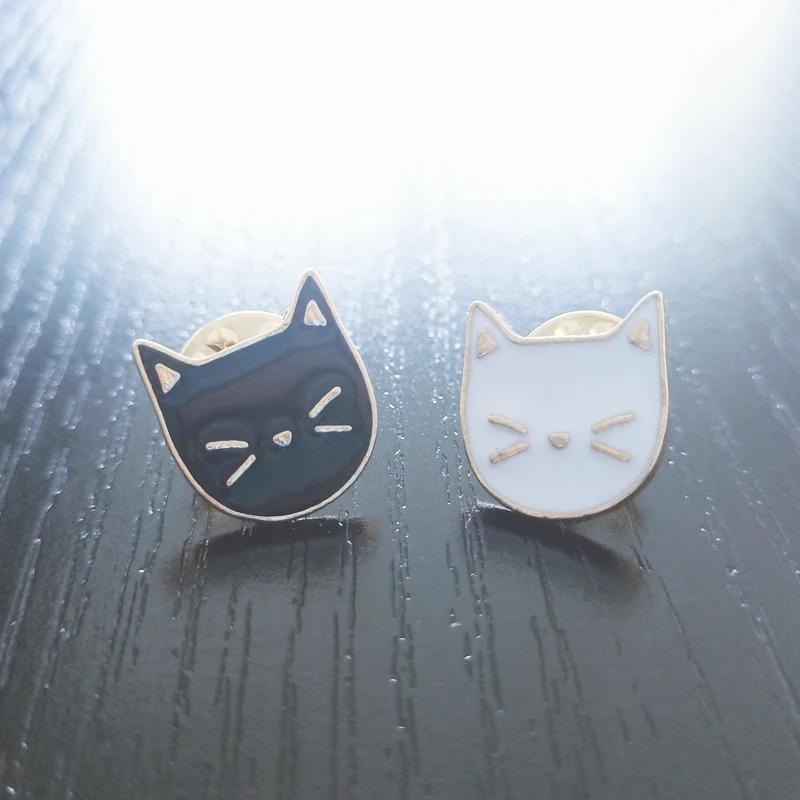 2 шт./компл., милое, черно-белое кошки животных на выставку брошь на булавке значок ювелирные изделия для детей девочек Pin джинсовая куртка с мультипликационным принтом, футболка броши подарки