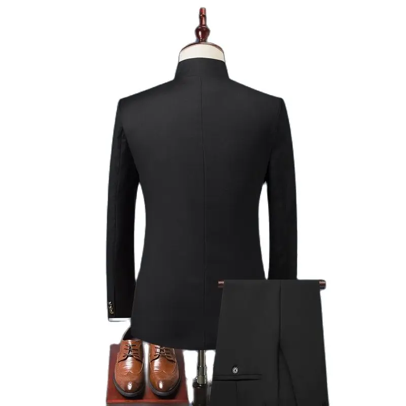 Осенний Новый черный мужской комплект из двух предметов (куртка + брюки), Модные Пиджаки и брюки, темно-синий, винно-красный, мужские костюмы 5xl