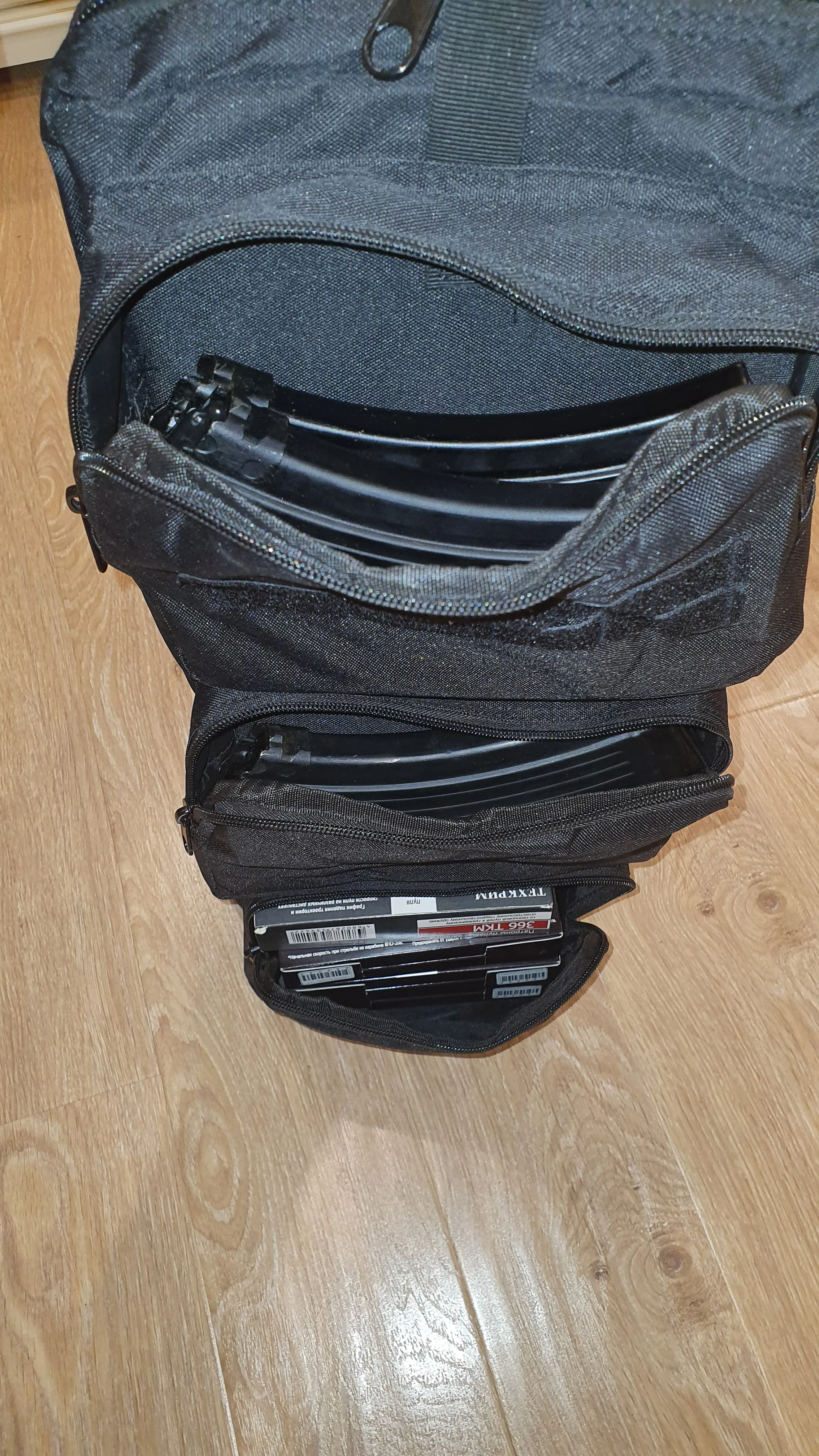 Отличная сумка для АКМ в коротком исполнении. Влезает точно. Хорошего качества, плотный материал, нитки не торчат. В карманы помещается 4 стандартных магазина и 5-6 пачек патронов. Не тестировал, но ремень на первый взгляд крепкий, выдержит. Отправка очень быстрая. Доставка Почтой России.