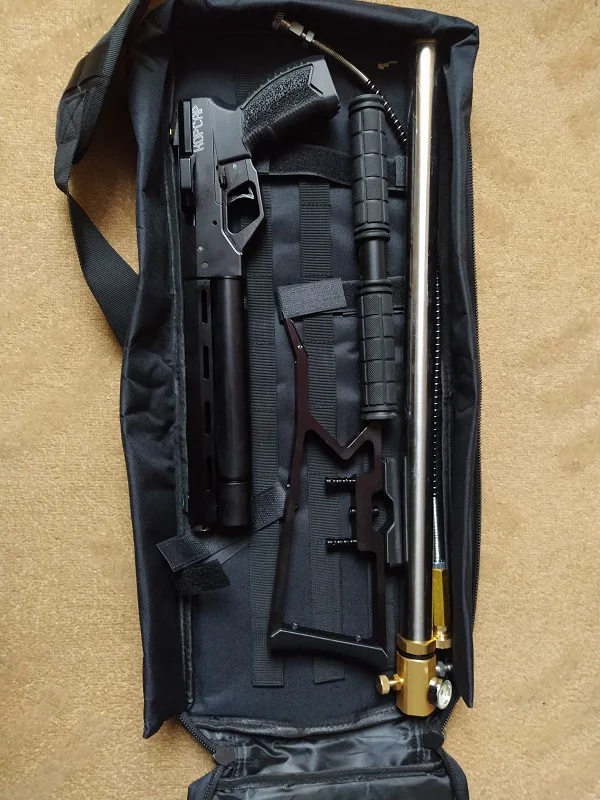 Рюкзак дошёл до Питера почти за месяц.Корсар с прикладом и насосом влазит нормально.Прицел миник придёт-тож уместим.И в карманы дофига чего можно положить.Думаю ещё пенку с туристического коврика с 2-х сторон вложить и всё будет замечательно.Спасибо!