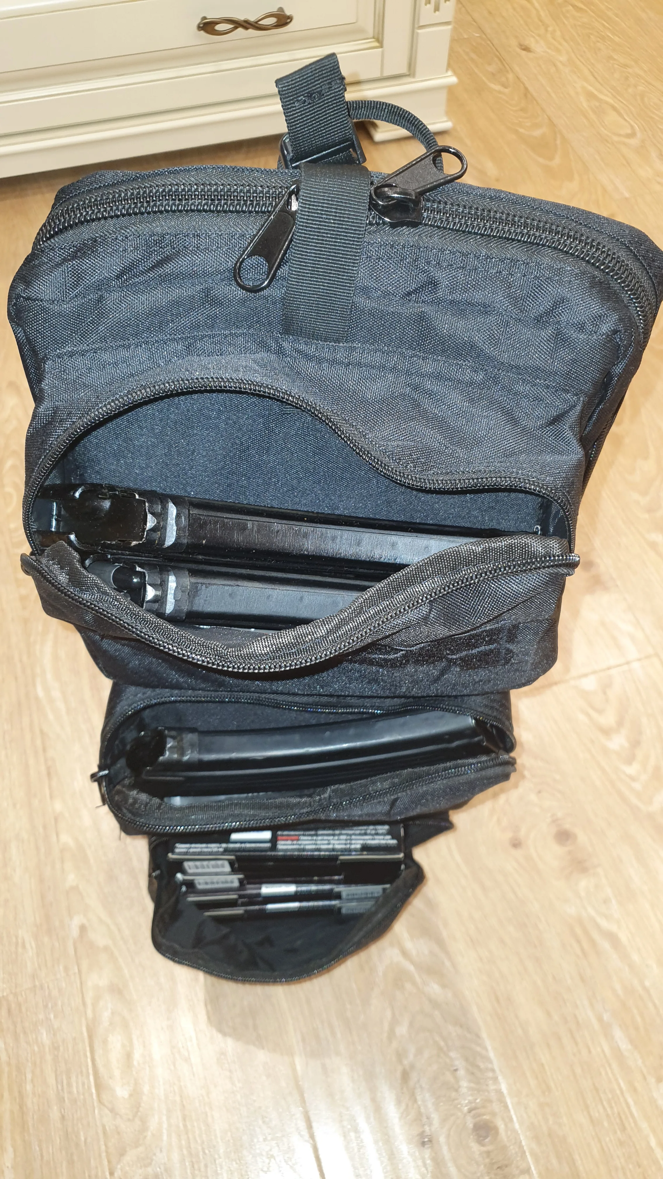 Отличный рюкзак, короткая Сайга-МК входит. Материал крепкий. Дошло быстро. В карманы входит загонник и магазины.