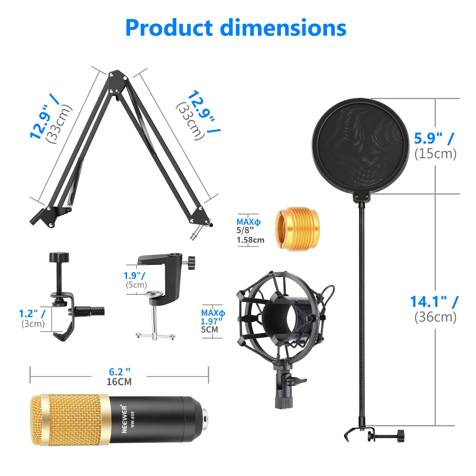 Neewer Профессиональный Студийный конденсаторный микрофон для записи и NW- 35 Регулируемая записывающая микрофонная подвеска с ножничной подставкой с ударным креплением и монтажным зажимом