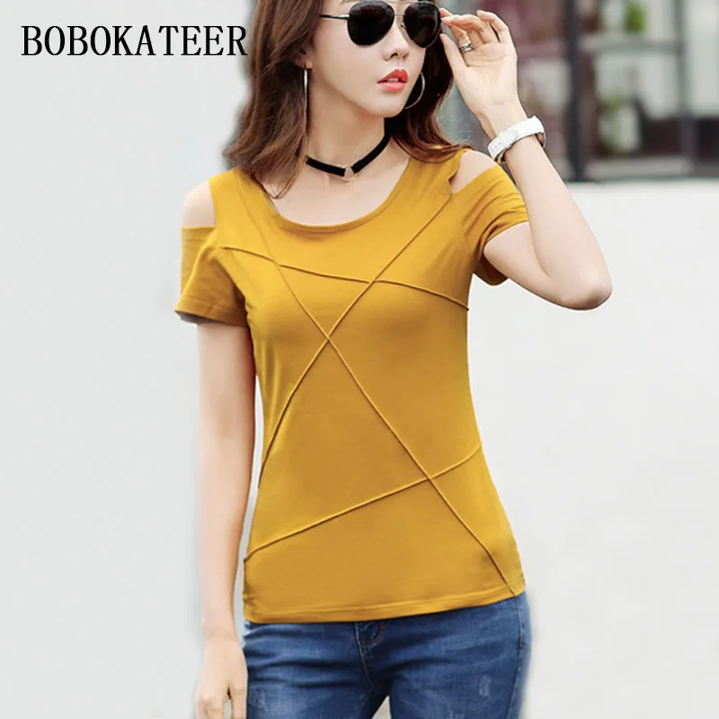 BOBOKATEER размера плюс футболка женская футболка camisetas verano mujer 2021 с открытыми плечами Летний Топ Футболка женская футболка