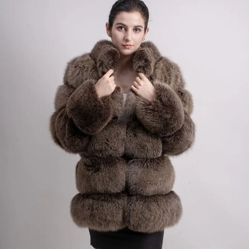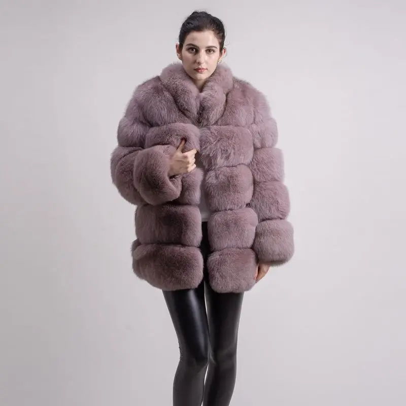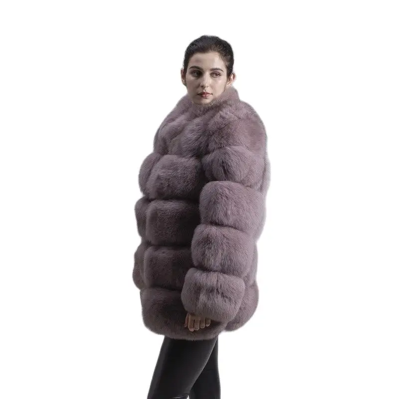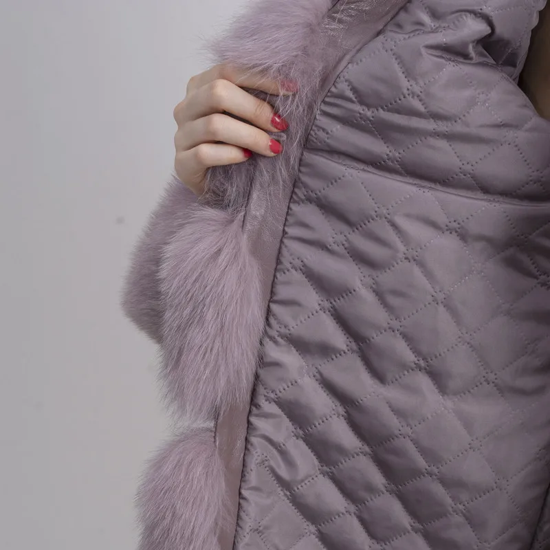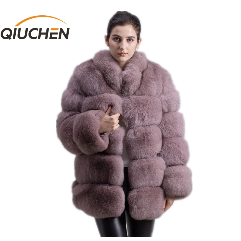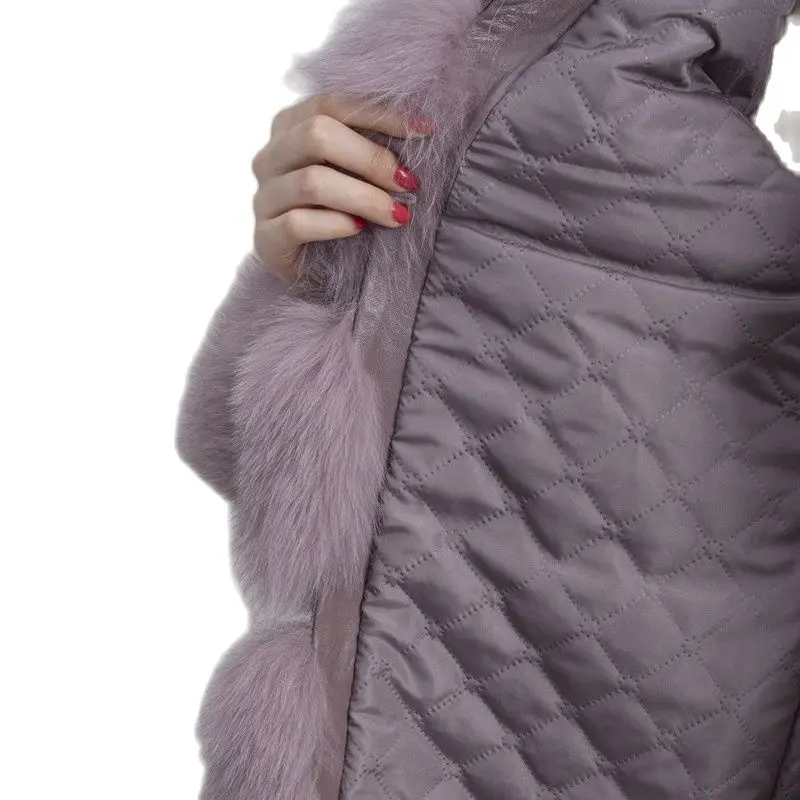 Женское зимнее пальто с длинным рукавом и воротником из лисьего меха