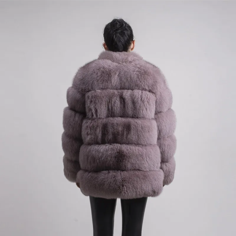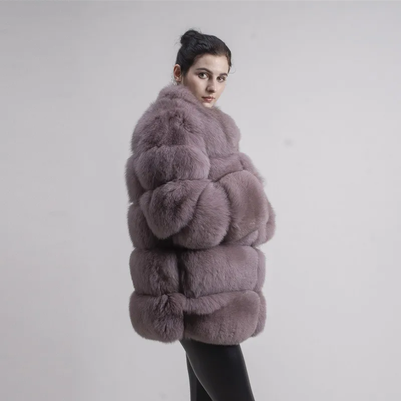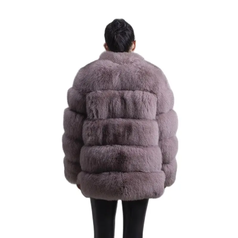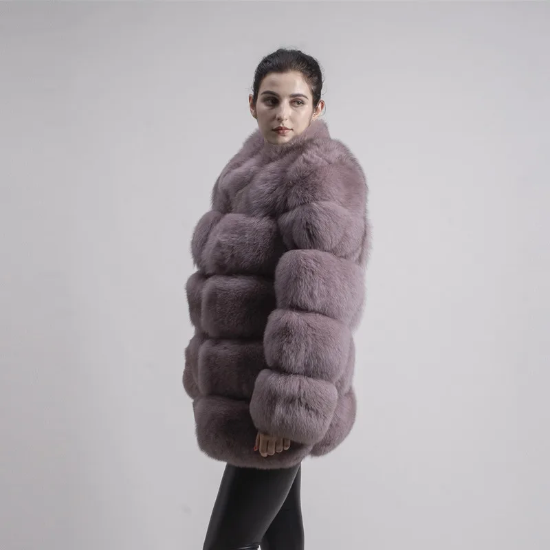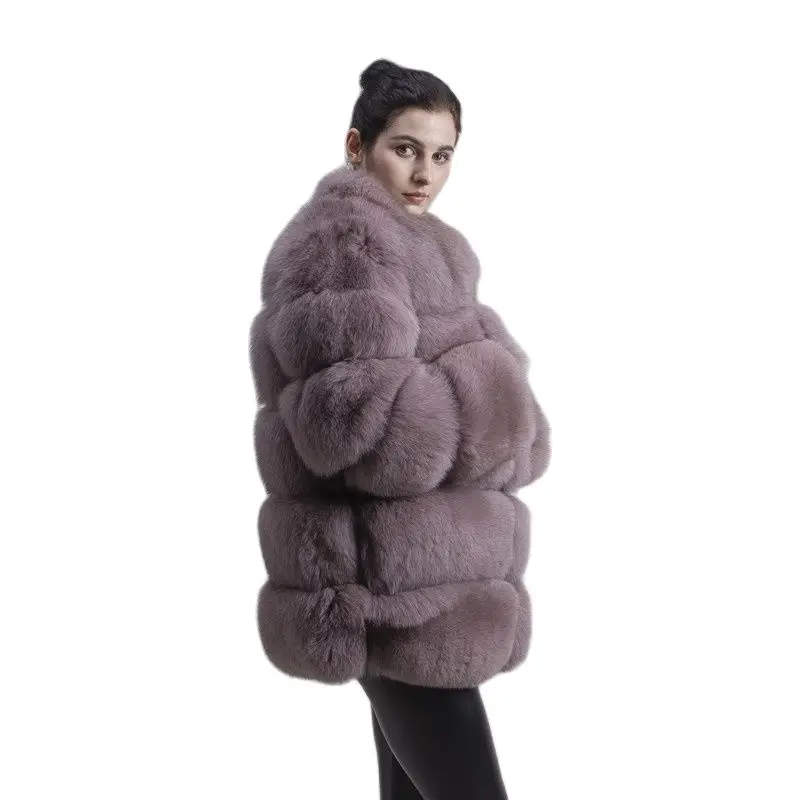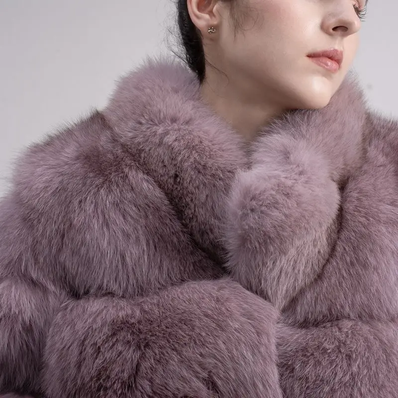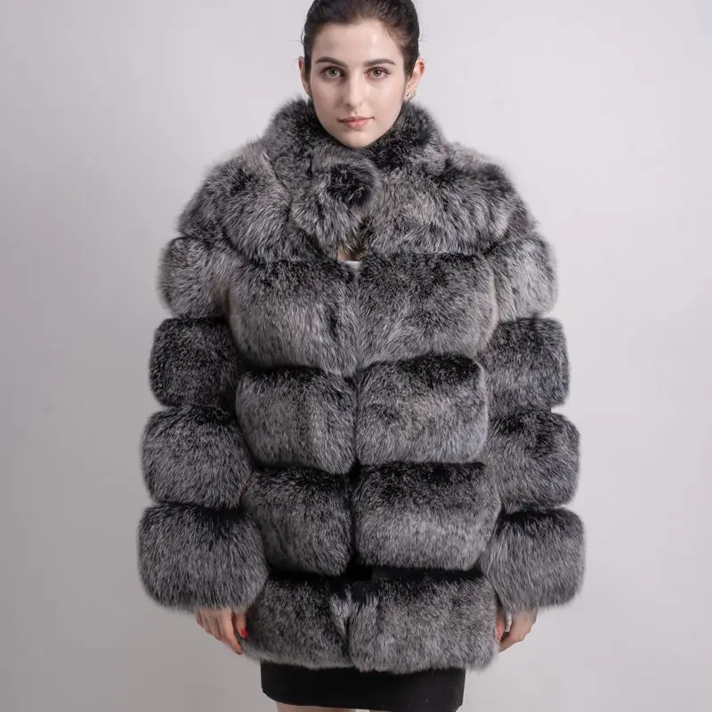 Женское зимнее пальто с длинным рукавом и воротником из лисьего меха