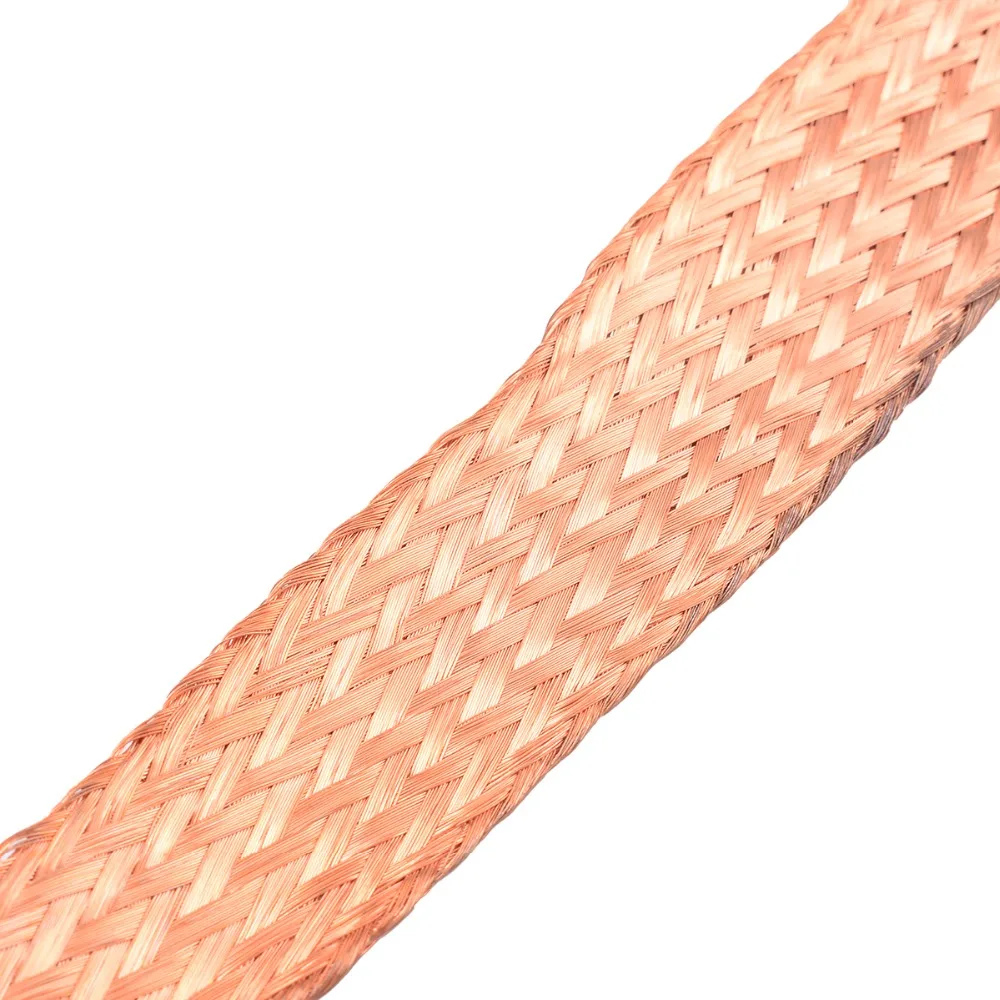 Плоский оплетенный кабель из чистой меди, 1 м, 3,3 фута, 15 мм, оплетка из чистой меди, провод с заземлением, гибкий кабель, оплетка из чистой меди, свинцовый провод