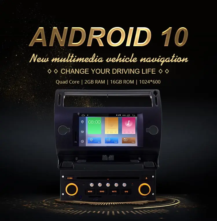 -С Canbus, поддержка управления рулевым колесом и отображение воздушной информации, PowerVR G6110 GPU, DDR3 2 ГБ, 16 ГБ внутренней памяти
