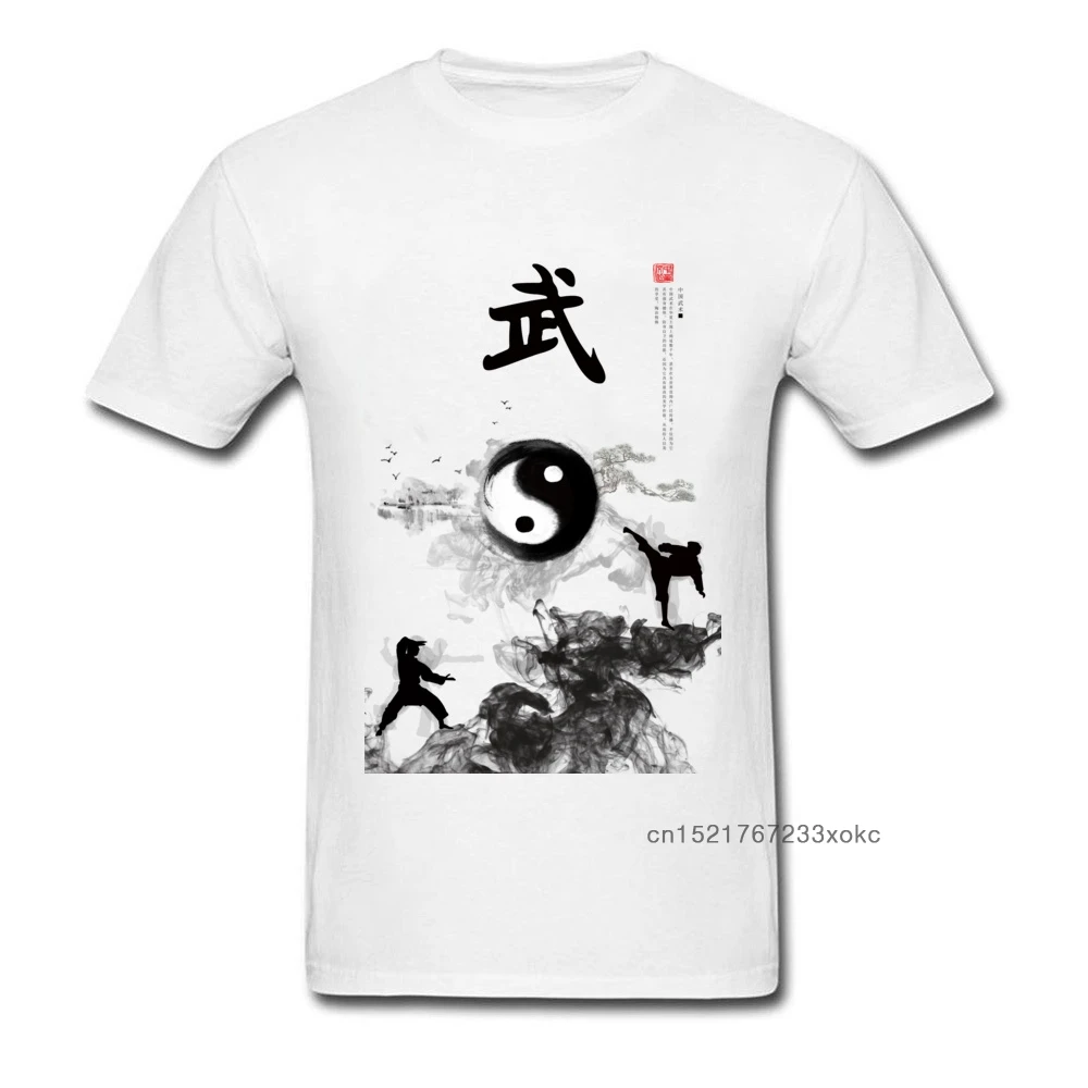 Мужская хлопковая футболка Yin Yang Kung Fu, белая футболка с коротким рукавом и рисунком водных чернил в традиционном китайском стиле, уникальный дизайн