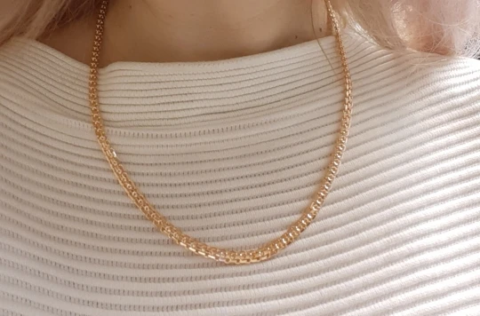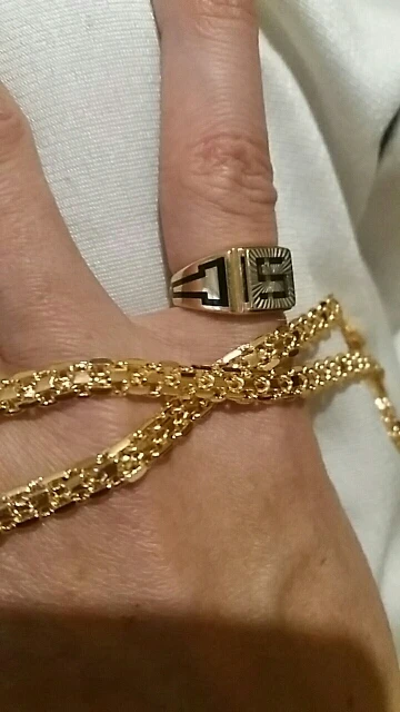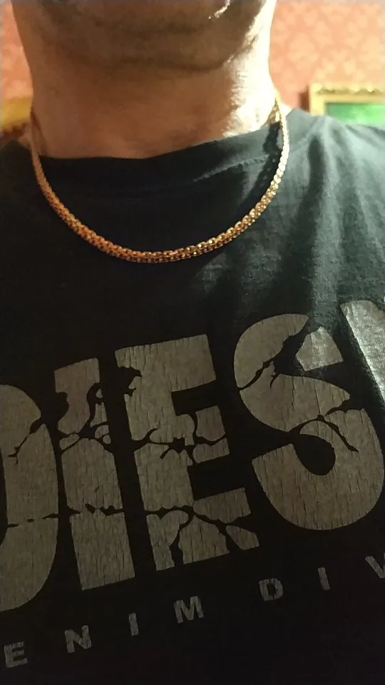 Цепь выглядеть великолепно. Смотрится отлично, но не желательно в ней мыться быстро потускнеет. А так как золото блестит.