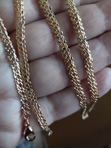 Цепочка красивая как на фото смотрится как золотая, мне понравилась, рекомендую.