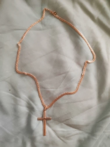 Приехала за 20 дней до Ниж.Обл. Заказывала для отца - 60см, хорошо одевается через голову, не надо растегивать. Блестит, по качеству претензий нет, всё ровно, от золота почти не отличить. Понравился рисунок, красивый, хорошо лежит не перекручивается.