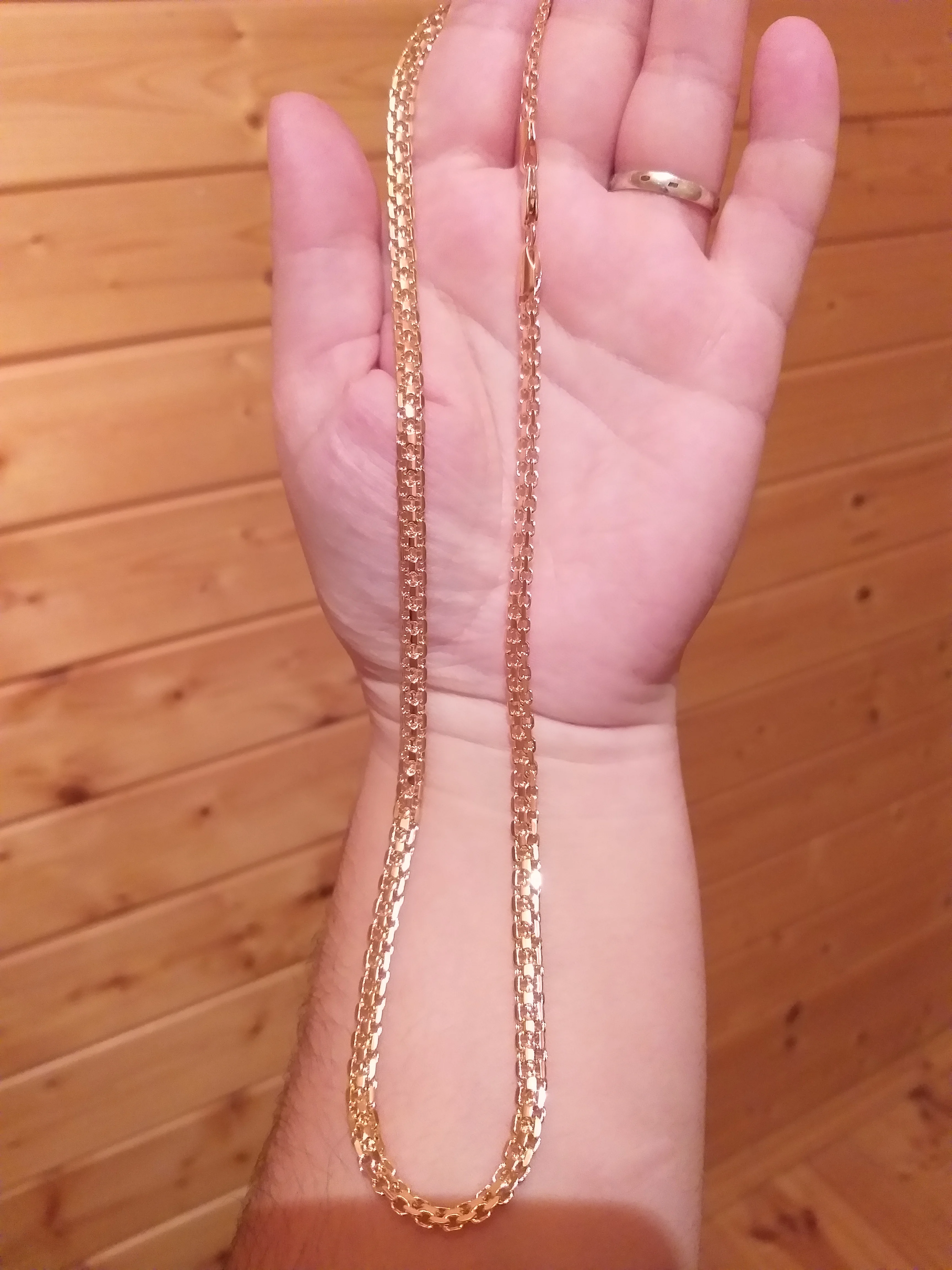 цепочка как в описание но цвет очень розовый на золото не тянет а так плетение хорошее потемнеет узнаем при носке дополню спасибо всем.