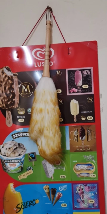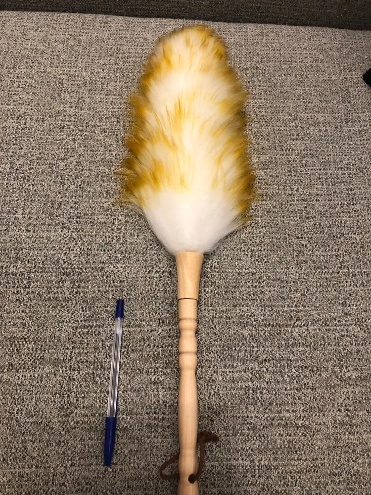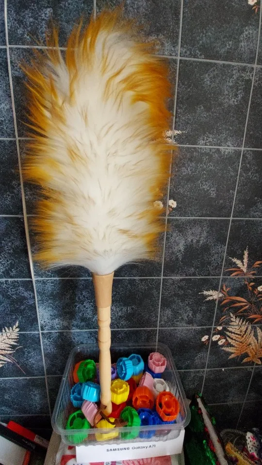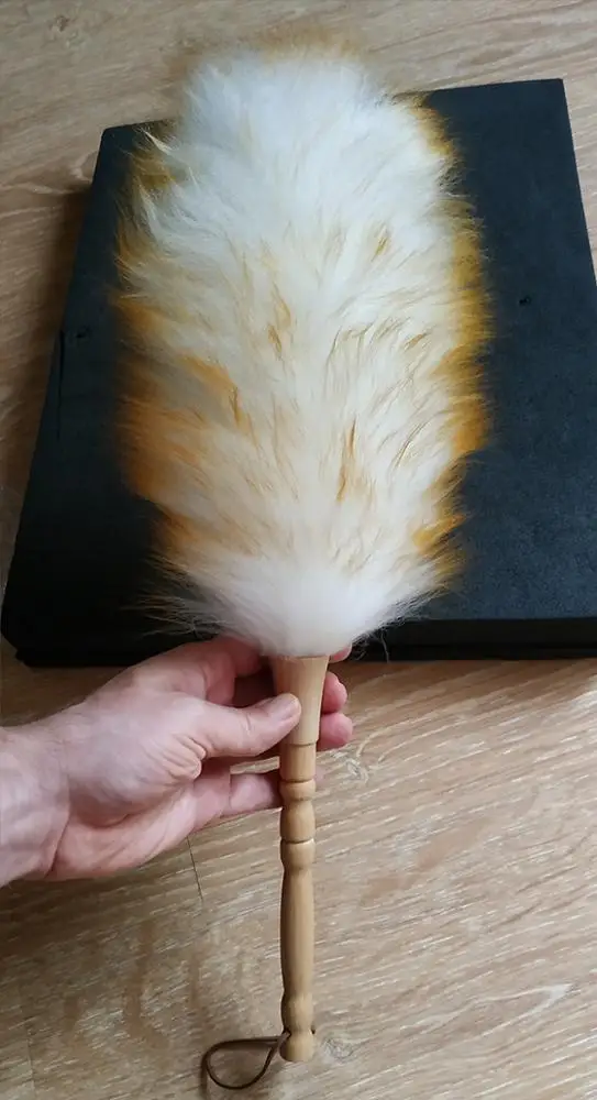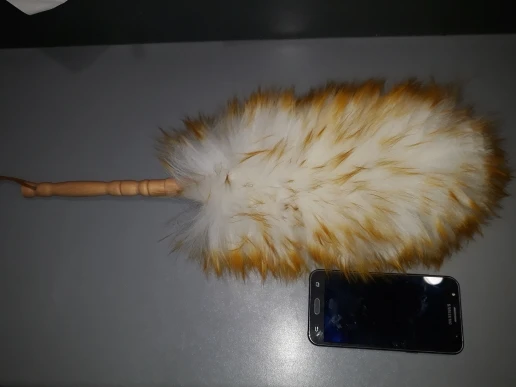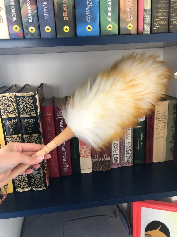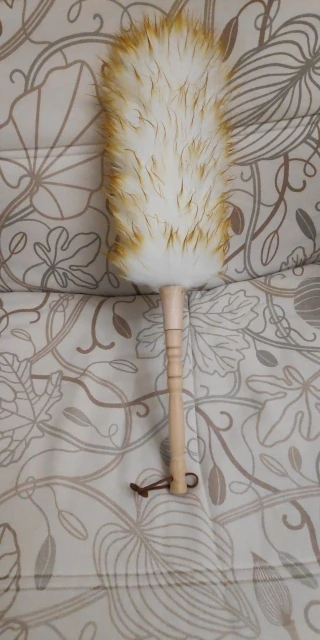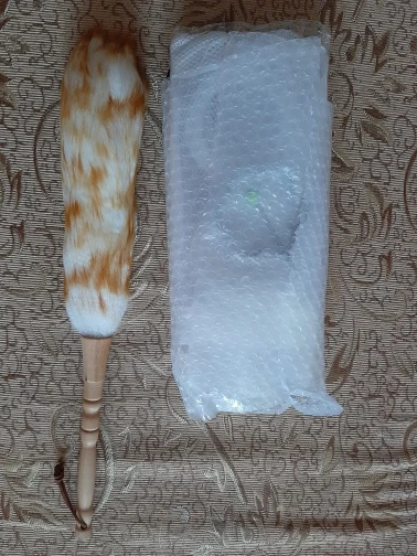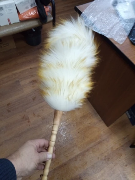 Щетка крутая. Размер хороший, достанет до потолка в квартире. Похоже что мех натуральный. Пыль убирает. Рекомендую