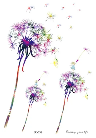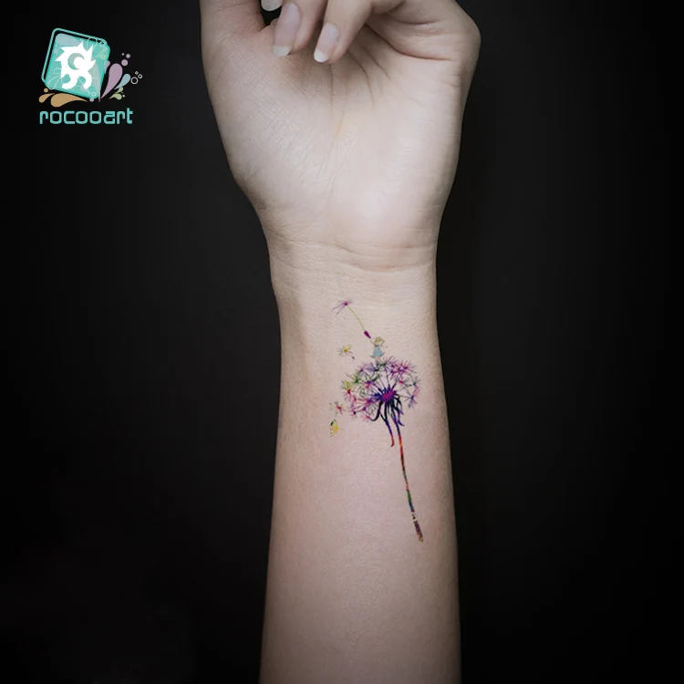 Rocooart SC552, красочная имитация татуировки с одуванчиком для девочек, Цветочная татуировка, боди-арт, временная татуировка, наклейка, Женская татуировка, флэш-тату