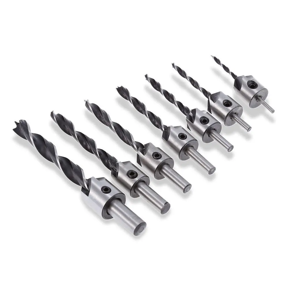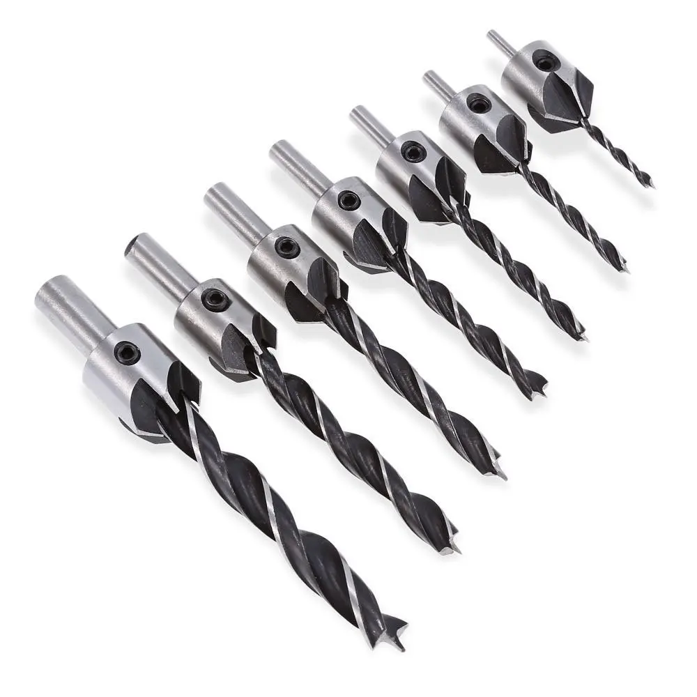 Набор сверл зенкеров, комплект из 7 насадок из быстрорежущей стали с 5 зубьями для фаски по дереву, 3-10 мм