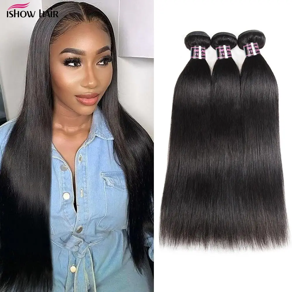 Ishow прямые волосы пряди бразильских волос пряди 8A Класс Пряди человеческих волос для наращивания 134 Связки переплетения двойной уточно-настилочно переплетенные