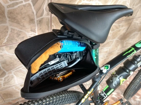 Сумка соответствует описанию. Под седло села на 5 баллов. В сумку уместилось: две камеры, мультиинструмент и монтажки.